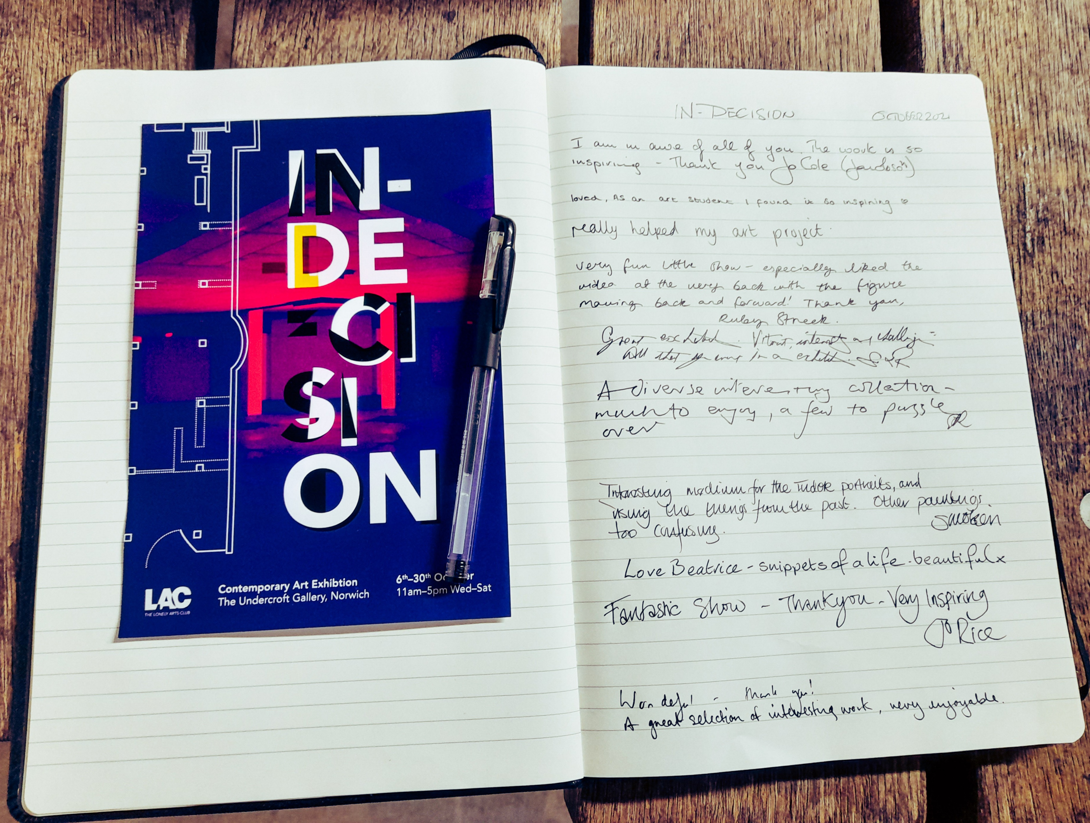 In-Decision is open 11-5, Wed-Sat until 30 Oct at The Undercroft Gallery, Norwich. Exhibiting artists are invigilating so do come and say hello and get a first-hand insight into their compelling work. It is an exciting mix of historical, environmental, personal and experimental art this year from 11 local artists.