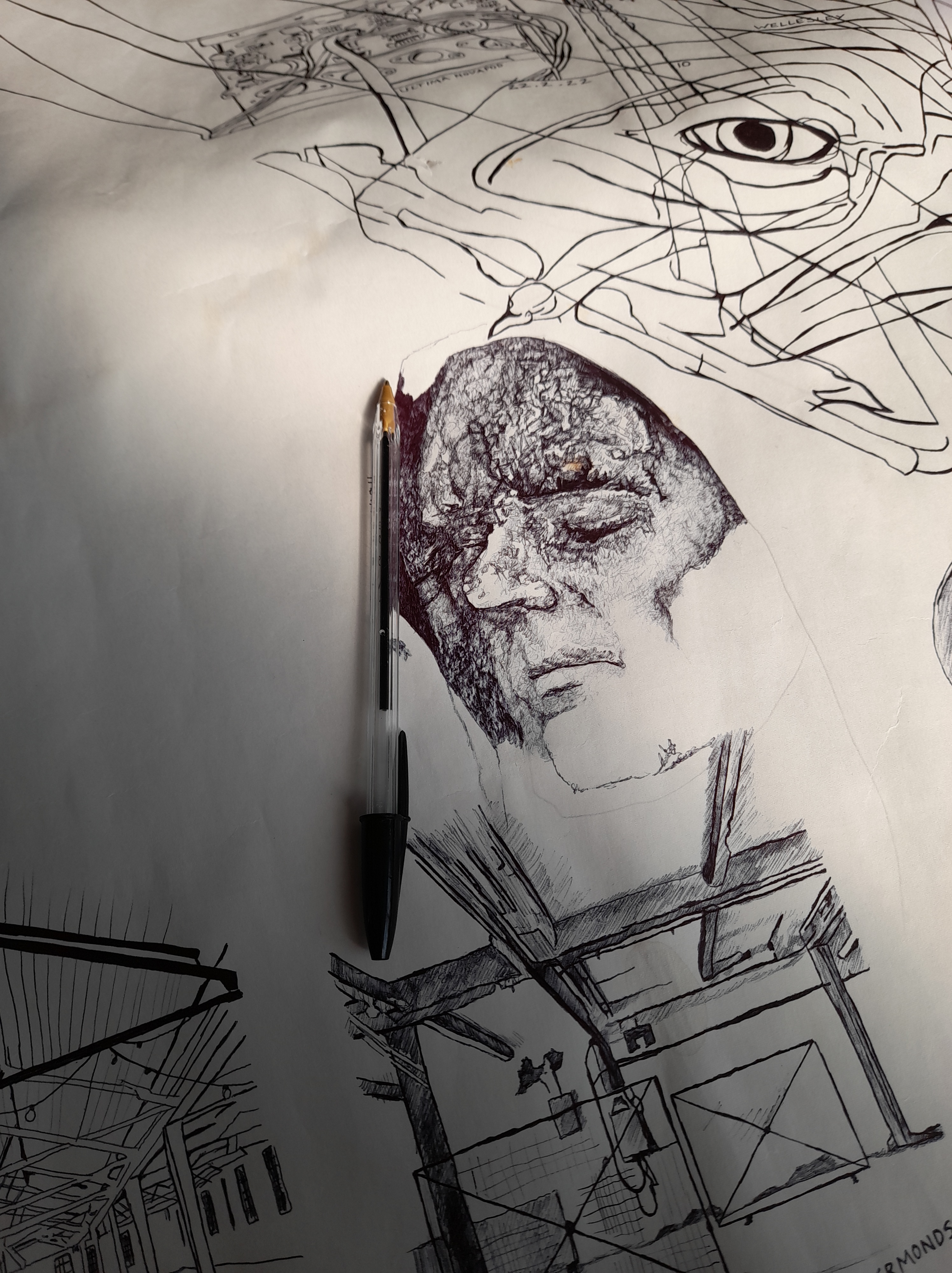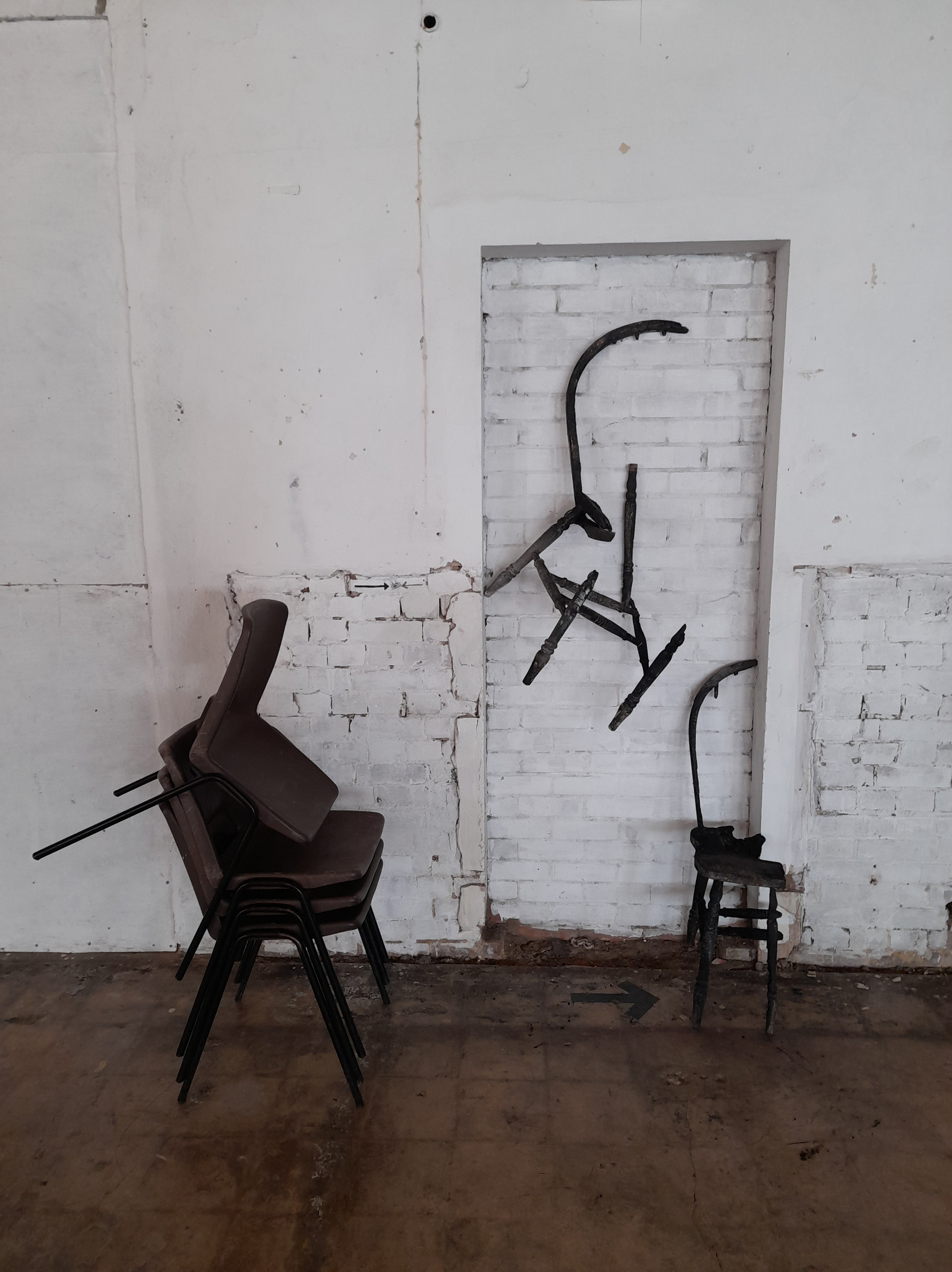 I was delighted to return to this disused factory with fellow Lonely Arts Club artists and enjoy a week of project work towards our June exhibition RESONANCE. I benefitted from getting a sense of the venue, realising its strengths and limitations. Too much ambient light thwarted my initial ideas about projecting my Cyberpunk films and digital collages. So I’m thinking a lot more about found object art, drawing and small scale vignettes.